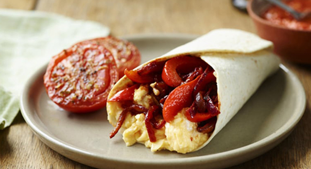 - Schritt 4: Die Eimasse gleichmäßig auf die Mitte von 4 Tortillas verteilen und das Gemüse draufgeben. Dann die Ränder der Tortillas von links und rechts über der Füllung zusammenschlagen. Zuletzt 2 Esslöffel Salsa auf jede Fajita geben.